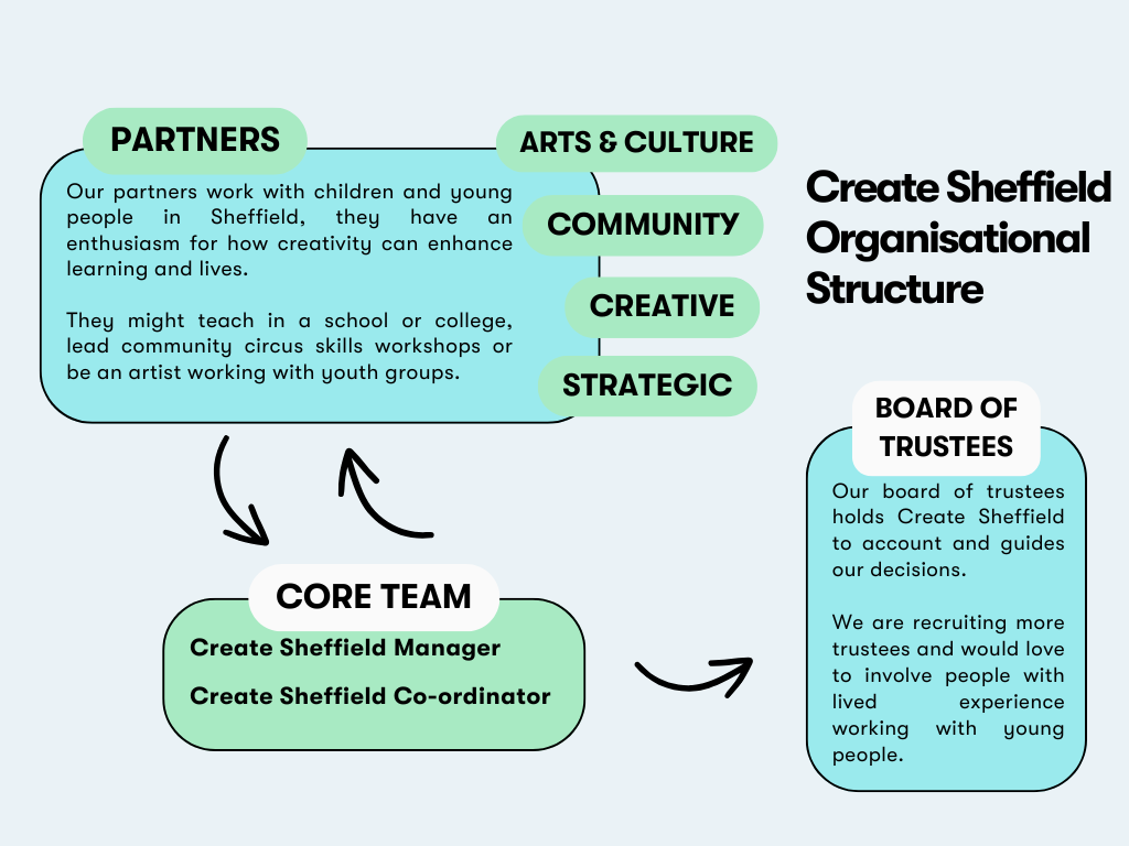 We also access funding from major cultural organisations, such as Sheffield Museums Trust, Sheffield Theatres and Sheffield Music Hub.